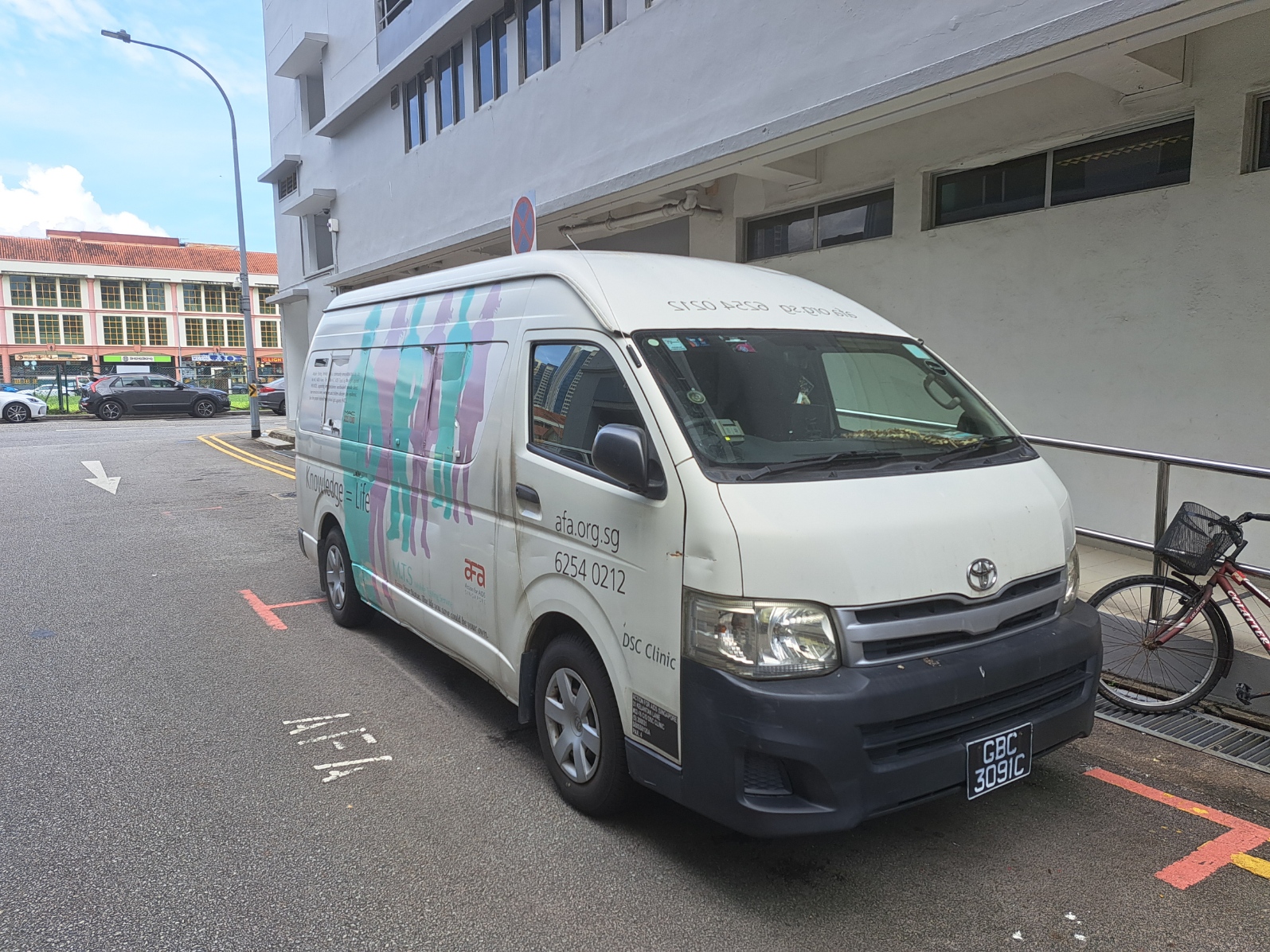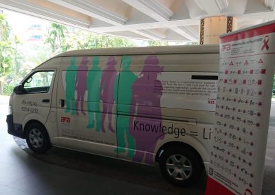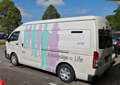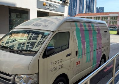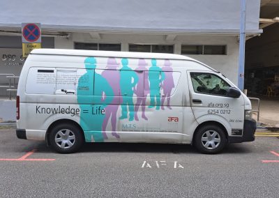 1. Designs will only be on both sides of the van (marked with red boxes), front and back will not have any designs except for AfA’s hotline and website.